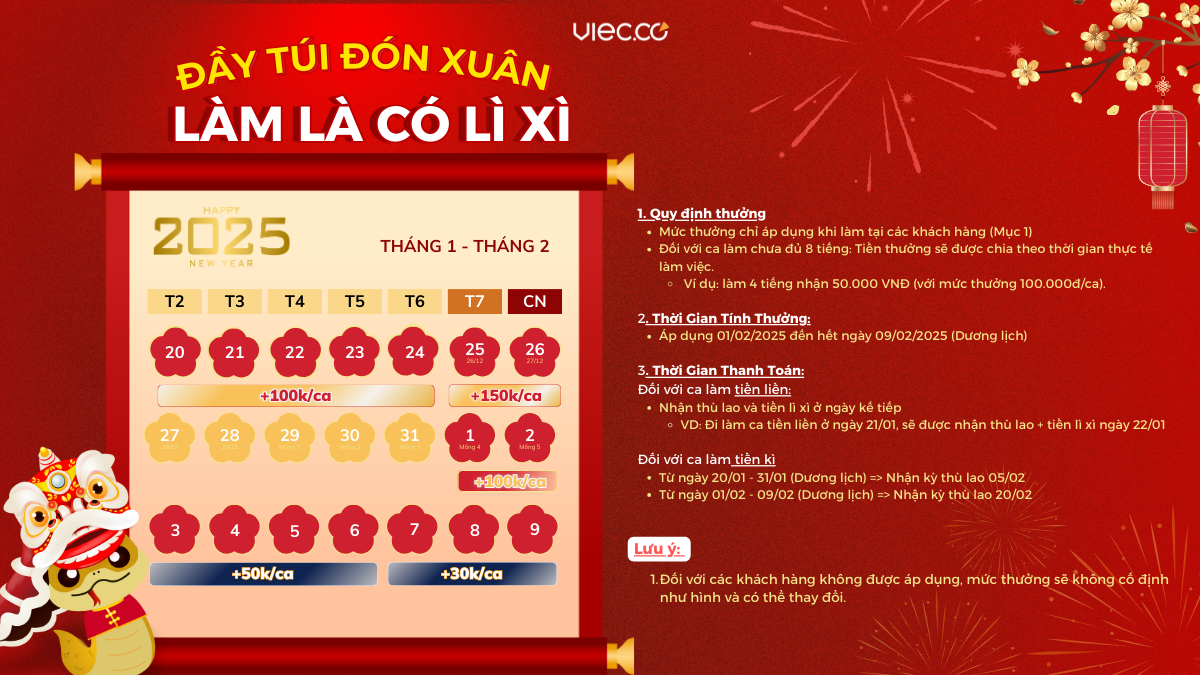 Chính sách thưởng Tết Ât Tỵ 2025 dành cho CTV tại Viec.Co